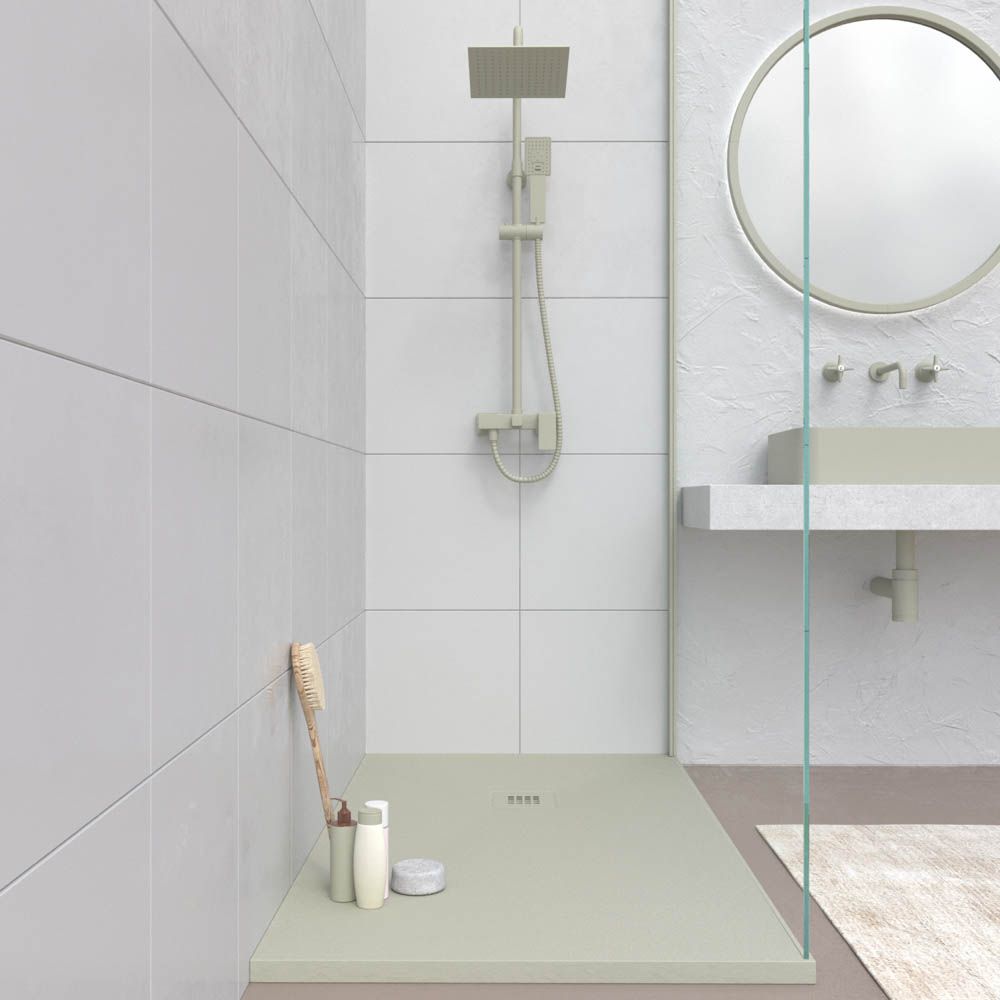 El plato de ducha de resina de la colección CLOE en varios colores es ultra delgado, es decir, tiene un espesor total reducido que permite montarlo a ras del suelo o encima. Realizado en resina con carga  mineral textura pizarra y acabado con gel coat antibacteriano, aportará elegancia a tu zona de ducha de diseño  por llevar la rejilla de acero inox termolacada  con el color del plato de ducha.Características :