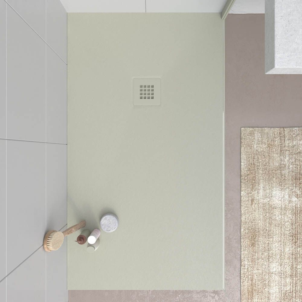 Plato ducha resina CLOE Gris Guijarro RAL 7032 con textura pizarra antibacteriano y antideslizante. Rejilla termolacada