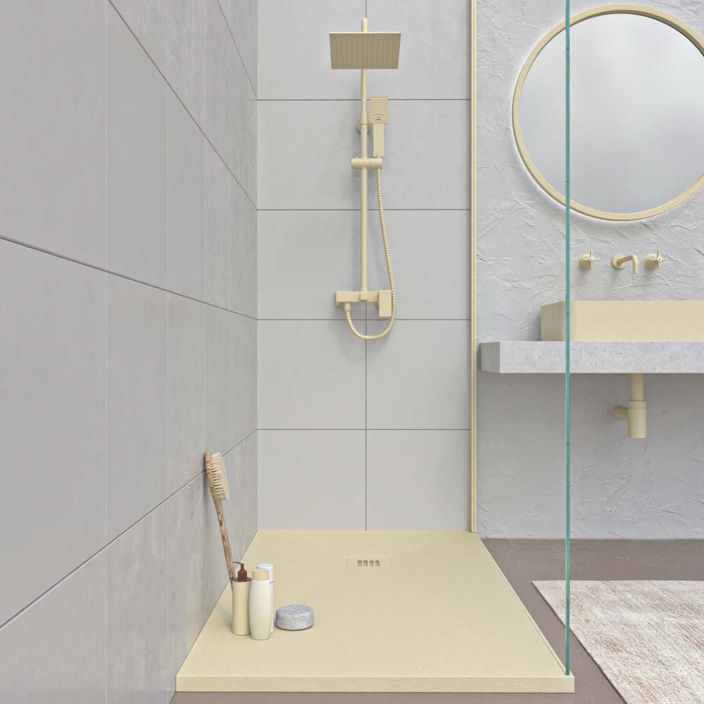 El plato de ducha de resina de la colección Mystone color Marfil RAL 1015 es ultra delgado, es decir, tiene un espesor total reducido que permite montarlo a ras del suelo o encima. Realizado en resina con carga mineral textura pizarra y acabado con gel coat antibacteriano, aportará elegancia a tu zona de ducha de diseño por llevar la rejilla de acero inoxidable, termo lacada con el color del plato de ducha. Características :