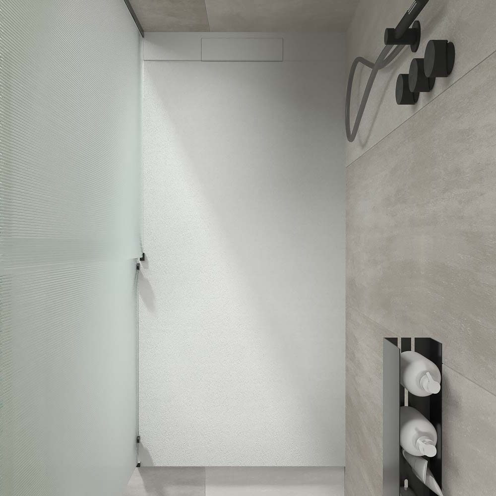 El plato de ducha hecho con resinas de última generación modelo PLASTER en color gris cemento presenta un diseño moderno, vanguardista y único. Es la fusión entre un plato liso y uno con marco. Esta acabado en GEL COAT antibacteriano y textura pizarra. Se puede cortar a la medida. La rejilla oculta una válvula de gran caudal.Características :