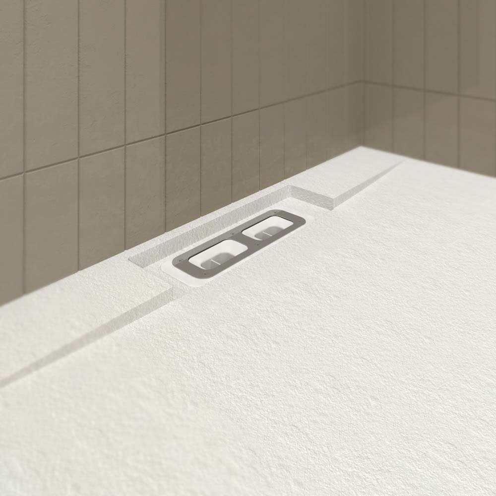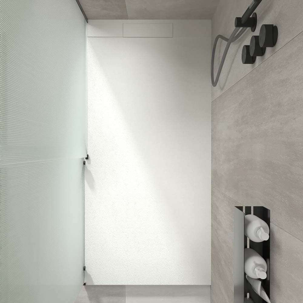 Plato ducha resina PLASTER Blanco – colores a elegir – textura pizarra – antibacteriano y antideslizante. Rejilla oculta