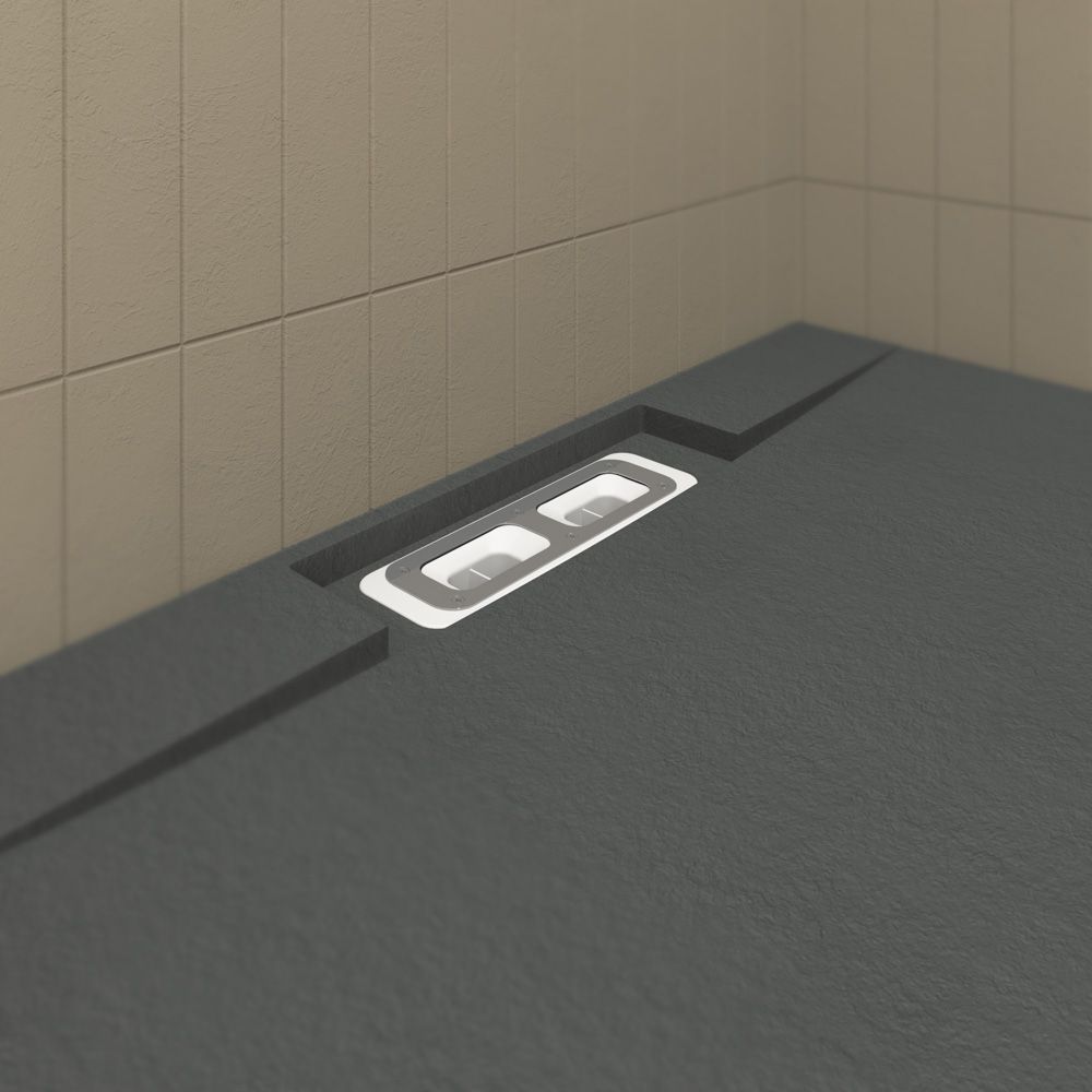 El plato de ducha hecho con resinas de última generación modelo PLASTER en color gris cemento presenta un diseño moderno, vanguardista y único. Es la fusión entre un plato liso y uno con marco. Esta acabado en GEL COAT antibacteriano y textura pizarra. Se puede cortar a la medida. La rejilla oculta una válvula de gran caudal.Características :